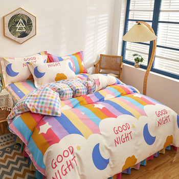 Juegos de funda de edredón de algodón cepillado tamaño Queen King, funda nórdica a rayas de arcoíris con 2 uds, funda de almohada, juego de cama de 4 piezas
